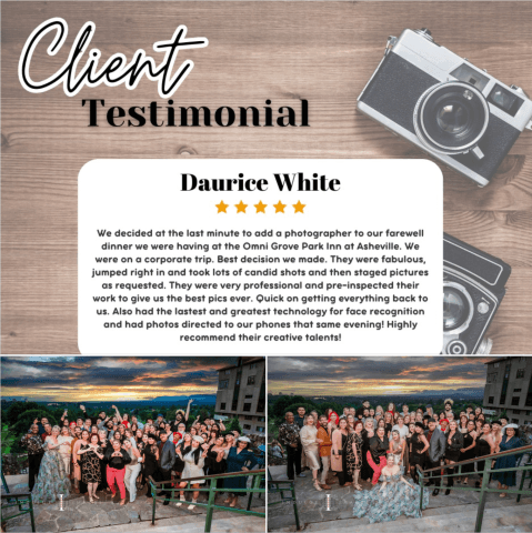 Indulge Images is your first choice for event and corporate photography. It's ALSO your TOP choice for photo booth experiences. We offer a wide selection of photography experiences from proprietary software with facial recognition for events. Customized templates and experiences with photo booths. Printing on site, digital images, video guests books, gif and boomerangs. More props that you can images. We even stage an entire scene with branding for your event. With a team of professionals that will treat you like the star you are, we have worked with 100's of celebrities over the last 10+ years and now want to focus more on WNC and bring our talents home! No matter how small or extra large your event is, we got you covered and can bring your vision to life!