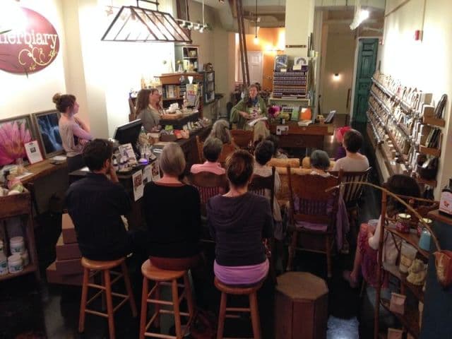 We sell the finest organic herbs, teas, tinctures, essential oils, flower essences, and natural body care products. All of our products are either organic, wildcrafted, or cultivated without chemicals. In addition to the herbal products, we also have books to help you learn more about the natural world, botanically themed gifts to share with that special someone (or yourself!), and supplies for do-it-yourselfers who need bottles, jars, tins, waxes, and other supplies. Our shop dogs, Nyssa and Finn, are happy to help you shop as are our awesome herbally trained staff. Come shop, or just stop by, sit back and relax on our couch and enjoy the beautiful smells!