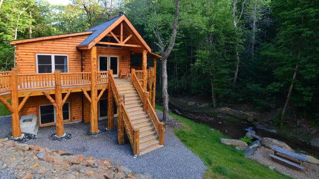 Seven log cabins surrounded by the majestic peaks of the Blue Ridge Mountains and resting on 35 breathtaking natural acres, awaits an unforgettable destination that's perfect for your next North Carolina vacation. High Rock Rentals brings you the best of the outdoors with the comforts of a five-star hotel to ensure you have a little of everything for a complete getaway. Choose from one of their premium mountain log homes that offer modern touches including fully-equipped kitchens, spacious living rooms, game rooms, and inviting decks that look out over the stunning landscapes. When you're not lounging indoors, head out to explore the magnificent mountain trails on a hiking adventure. Local waterfalls and rivers make for incredible photo opportunities as well, while the nearby town of Asheville is full of attractions including the beautiful Biltmore Estate! The prime selection of accommodations from High Rock Rentals are ready for your whole family, including your pet. Located in the heart of the Blue Ridge Mountains and close to the exciting towns of Black Mountain, Montreat, and Asheville, High Rock Rentals provides you and your loved ones the perfect setting to reconnect. Here, you can plan an adventure through the surrounding mountain trails hiking or spend a day visiting local sites in town. After you've had your fill of fun, you can relax in your private home-away-from-home that's equipped with a full kitchen, spacious deck for unwinding, large screen satellite television and more. Some units even have game rooms for extra entertainment!