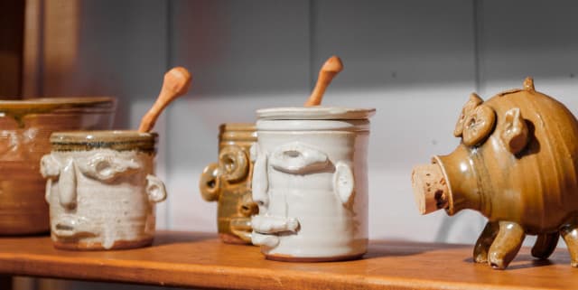 • Unusual objects for unconventional people. We specialize in the unique, scouring the region looking for rough-around-the-edges rustic antiques, folk art, and fine craft. You won't find blah brown pottery here, but instead the creme-de-la-creme of local masters. Funky handmade jewelry, and brilliant blown glass.