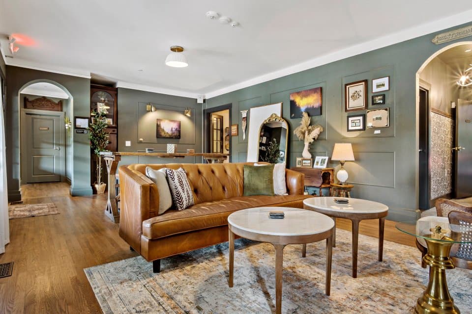 Work where history meets modern comfort. Our coworking space is set within a beautifully renovated 1936 Georgian Revival home, blending timeless architecture with a relaxed, boutique hotel atmosphere. The main level features a full service coffee bar by day and a cocktail bar by night, with inviting spaces designed for remote work, meetings, and lingering conversations. A place to focus, connect, and feel at home.