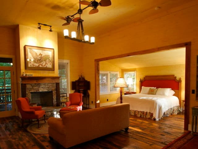 - These cabins look rustic from the outside, but offer comfort and charm on the inside. Each are graced by two wood burning fireplaces, 1 inside and 1 on the porch overlooking the pastures and woods. This retreat incorporates a morning kitchen, jacuzzi tub, cozy bed linens and inviting furnishings. The cottages are newly renovated, but original homes on the property. Incorporating touches of the rustic "arts and crafts" era of Asheville inside and out to capture the retreats of "yesteryear" in the Smoky Mts. Each cottage has a full kitchen and laundry, hand crafted furnishings and porches to enjoy the outdoors. All Cabins and Cottages are Wi-Fi, cable and DVD players available in each. 9 miles from Asheville and 20 min to Waynesville. Absolutely a place to enjoy!