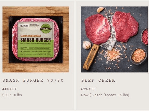 Sale InformationAll sale items are 25–60% off. No additional discounts apply. Click the link in the posting to see the offerings we're putting on sale! There are no item limits; all products are available first come, first served while supplies last. Note that some of these items may be misfits - an imperfect cut or yellower fat.