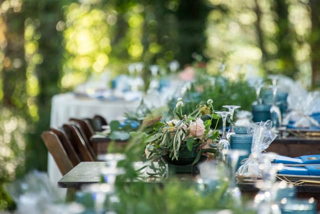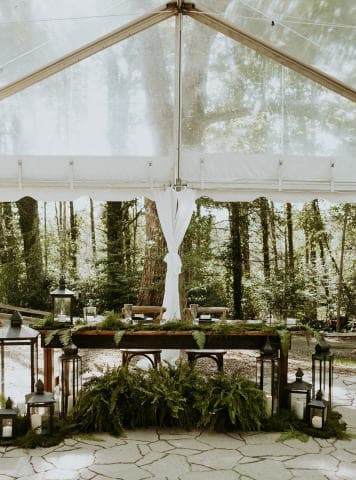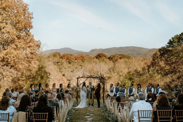 Nestled in the foothills of the Blue Ridge Mountains, Twisty Maple offers an enchanting setting for your special day. Views of Little Pisgah and Bear Wallow Mountain offer a scenic backdrop for your ceremony, and the clear-top tent hosts dinner and dancing under the stars and twinkling cafe lights! Packages include overnight accommodations, staffing, and coordination. Twisty Maple is an intimate venue that ensures a romantic and memorable day, blending the beauty of nature with sophisticated style.