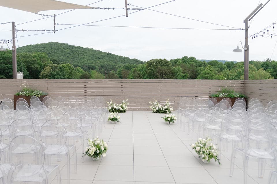 The Rooftop is the perfect backdrop for your spring, summer or fall ceremony, cocktail hour or welcome party as it offers you and your guests views of the Blue Ridge Mountains and surrounding hillsides. For winter weddings‚ hold your ceremony on the first level of the Event Center framed against our beautiful mountain mural.