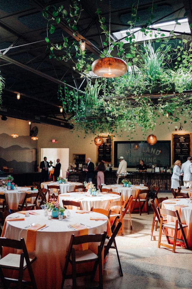 The Barrel Room, is ideal for weddings of 85 or fewer guests and rehearsal dinners and welcome parties of 100 or fewer guests. Posh without being stuffy‚ casual yet intimate – the Barrel Room features racks of barrels lining the room‚ skylights‚ show-stopping hanging planters‚ private patio‚ and a bar with barrel stave accents overlooking our sour and barrel-aged beer production area. Combine the Event Center and the Barrel Room for the ultimate experience for your guests!