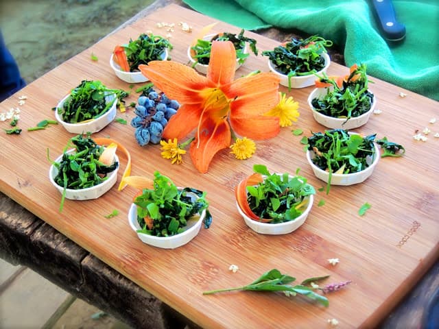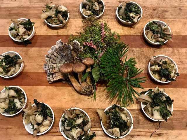 We’ve been taking people “out to eat” for 25 years. Led by expert guides, you’ll discover at least a dozen wild edibles, including ones you might find in your own backyard: greens, berries, mushrooms, flowers, roots, nuts… we never know what we might find! We gather a few and cook some up for a tasting. You can keep your foraged finds or have them crafted into an appetizer at an award-winning Asheville restaurant.
