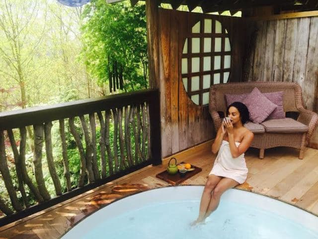 Forest Bathing Shinrin-Yoku Begin with a 60 minute private saltwater tub soak, which includes full access to our cedar sauna and cold showers, then make your way to our open air Senjo exfoliation showers with our house made scrub and conclude with a 60 minute Swedish massage. All while surrounded by the crisp magic of the Blue Ridge Mountains this fall! Availability is not listed online. Call (828) 299-0999 to book.
