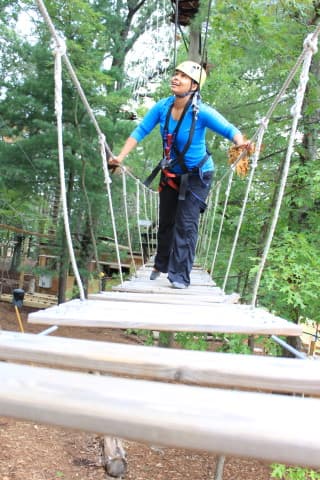 - Asheville Treetops Adventure Park has 77 unique climbing, zipping, walking, jumping, swinging, and rappelling challenges anchored to over 30 trees and towering poles tucked into a wooded park. There are 5 courses ranging from beginner to challenging levels. So choose your level for hours of fun!