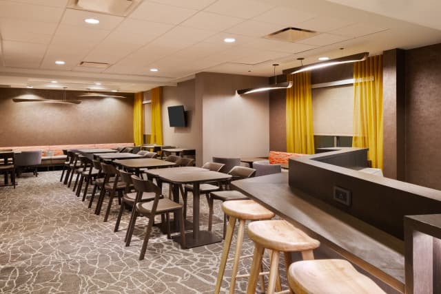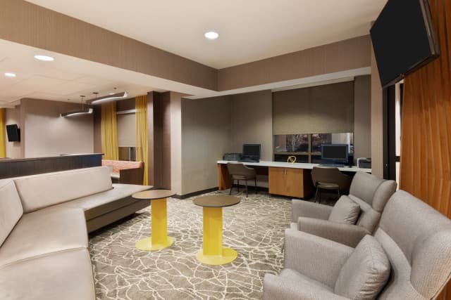 Fuel your outdoor passions from our Asheville lodgings! Whether it’s work or play, our studio suite rooms are the perfect modern design for any lifestyle! SpringHill Suites Asheville is the perfect central point to everything Asheville has to offer. Each pet-friendly suite is 25% larger than standard hotels so you can work at the spacious desk with free Wi-Fi, relax in the TV sitting area with trundle style sleeper sofa and rejuvenate in the comfy Serta® bed. Don’t forget the midnight snack you can whip up in the mini kitchenette area with goodies from our 24-hour Market Pantry! Families love that our Asheville accommodations can sleep up to six people and the scrumptious complimentary deluxe breakfast buffet that starts the day off just right. Our indoor pool or well-equipped fitness center with yoga area gets the body pumping for what lies ahead. Just minutes from the downtown area, the Biltmore Estate and adventurous outdoor activities, the sky’s the limit when it comes to enjoying your visit. You choose work, play or both - we say do it all!