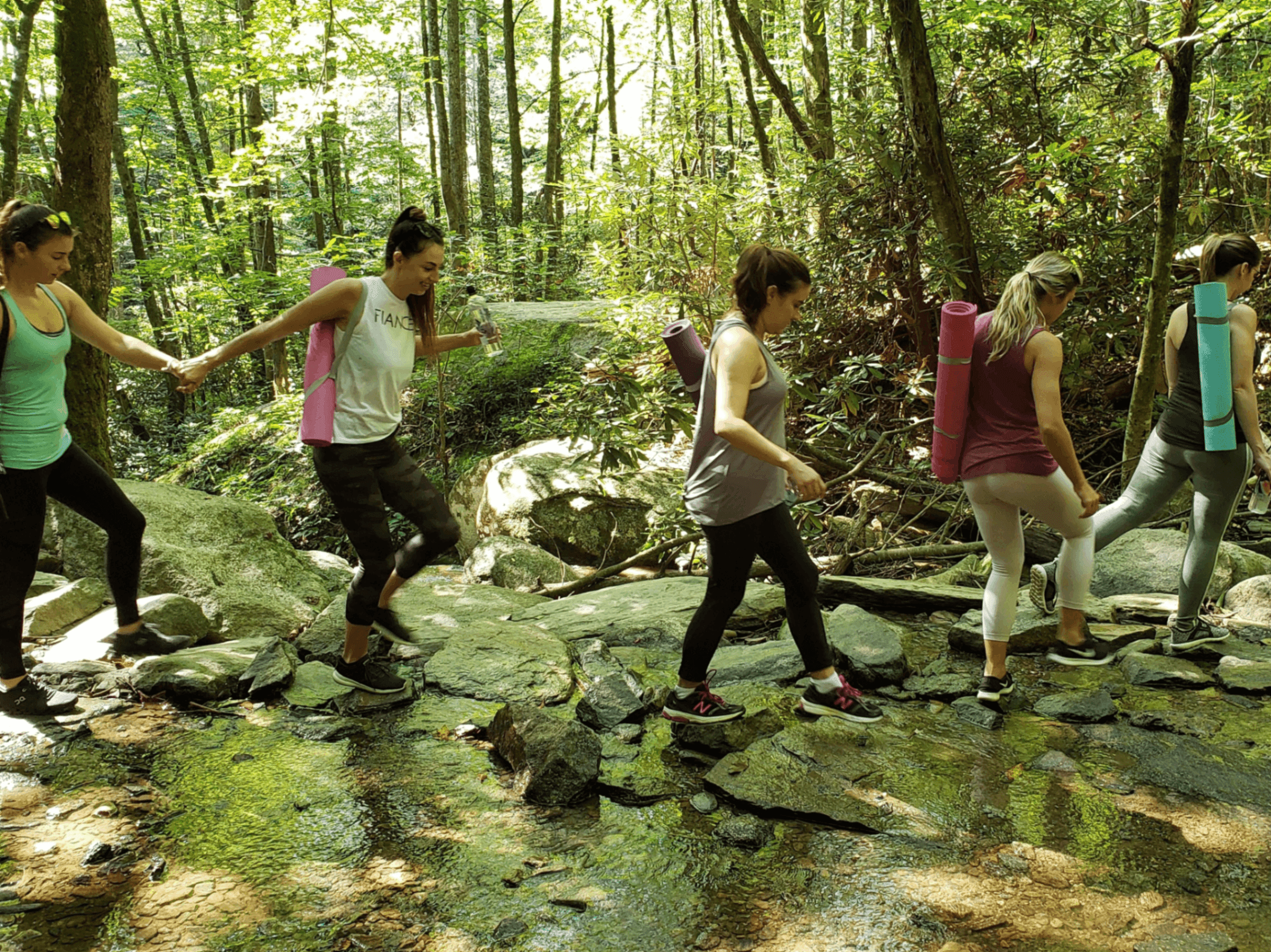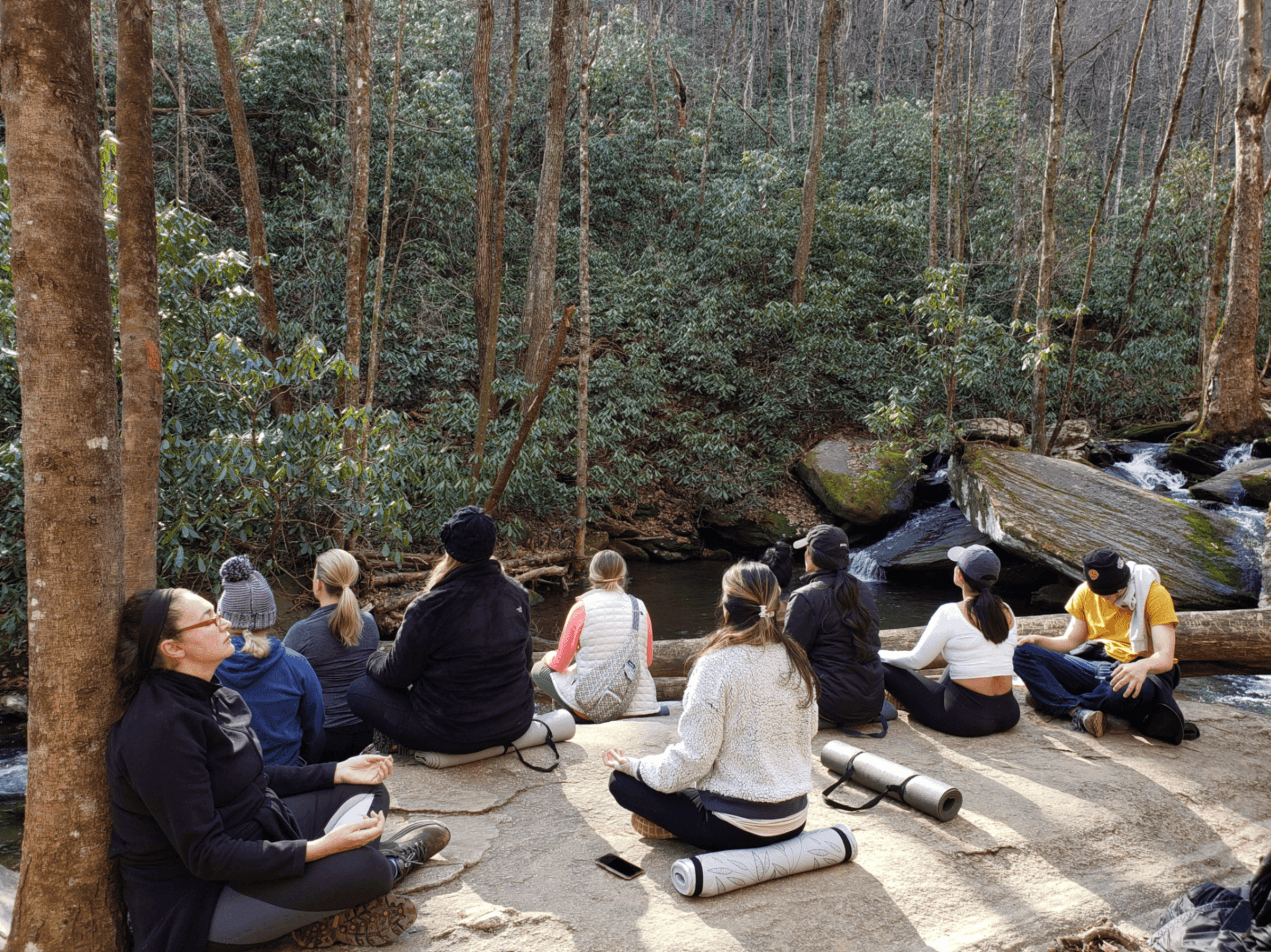 Our Refreshing Waterfall Yoga Micro Retreat will take place at Catawba Falls. This trail is is 1.2 miles to the 100 ft majestic waterfall, one of the most popular waterfall locations in Western North Carolina! You'll be on a gradual incline the entire way to the falls (the hike is easy-moderate, recommended for most without limitations), walking alongside the Catawba River. Here you'll learn history of the former hydroelectric system (still some ruins stand), and observe the remarkable surrounding beauty. You will enjoy a 10-15 minute meditation along the river, and then head to an open spot in the woods for a 60 minute yoga class, all-levels accommodating.