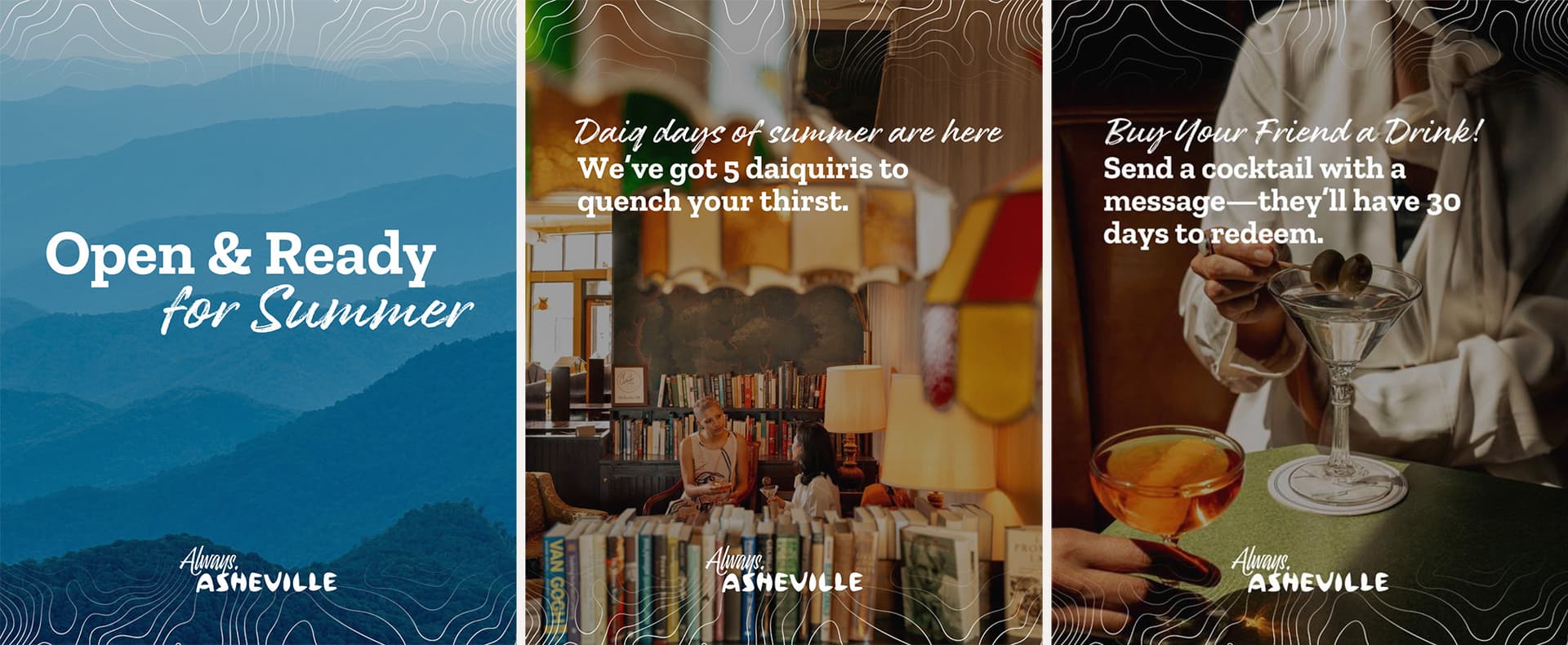 Purpose: Showcase the Asheville area as fully open, vibrant, and full of can’t-miss summer experiences.