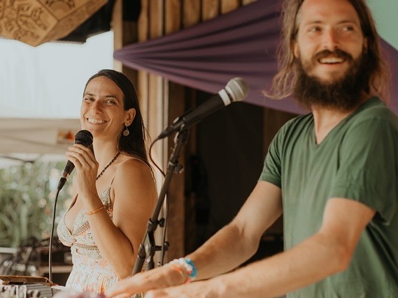 Tree People is a musical duo, playing soulful, funky, folky heart-songs with empowering sing-alongs and groovy live-looping that will get people dancing, singing, and having a transformational, heart-opening experience. With Xue Lionstone on keys, bass, and drums, and Grace Love on guitarlele, guitar, bass, and keys, this dynamic duo delivers heartfelt, acoustic performances as well as engaging live-looping compilations to create a full band sound that gets everybody moving and grooving. Best experienced in a circle, these two create a moving soundscape that brings communities together in song.